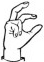 На ћирилици написано САВЕТА БЗЕНИЋ састоји се из 12 слова [?]. Исписано ћириличном једноручном азбуком за глувонеме: